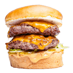 Hamburger köftesi 2 adet (150gr), domates, göbek, soğan halkası, dilim chedar ve karamelize soğan ile.