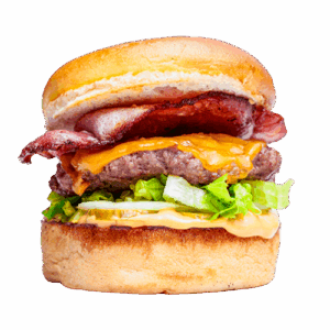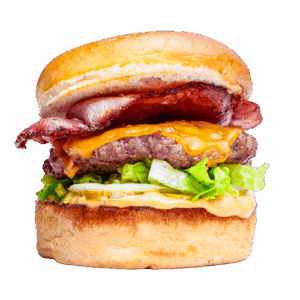 Hamburger köftesi (150gr), domates, göbek, turşu, dilim dana jambon, dilim cheddar, sweet chili sos ve soğan halkası ile.