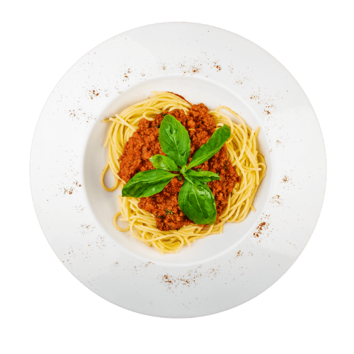 Spagetti makarna (230gr), napoliten sos, bolonez sos ve biber ile.